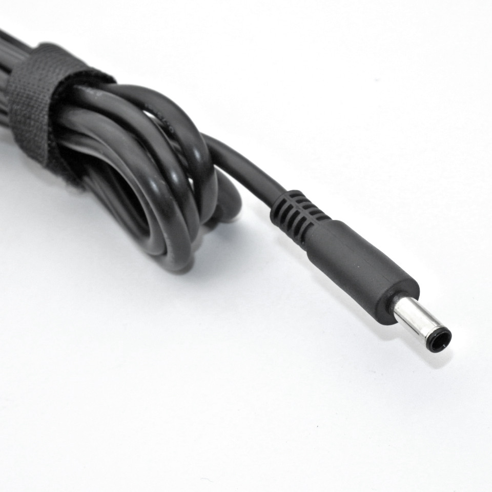 This adapter features the small (slim) pin connector, which is compatible with many modern Dell Inspiron, Vostro, Latitude, and XPS models. Safety features include protection against overvoltage, overheating, and short-circuiting, ensuring device and user safety.