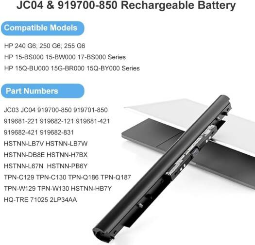 Keep your laptop powered and productive with this high-quality HP JC04 / JC03 replacement battery from ACTIVE BAZAR. This battery is compatible with a wide range of HP G6, BS, and Notebook series laptops, offering excellent performance, reliability, and long-lasting power.