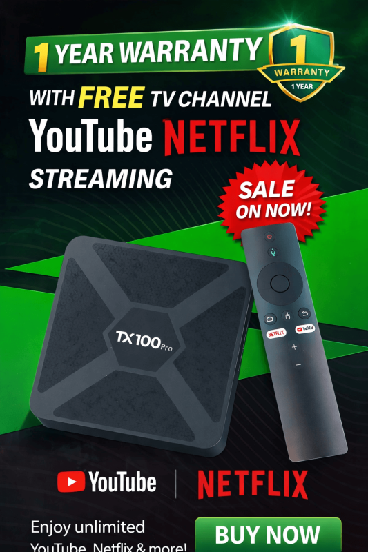 The TX100 Pro 12K UHD Android TV Box is designed to transform your regular television into a powerful smart entertainment hub. With support for stunning 12K Ultra HD resolution, it delivers impressive video clarity and vibrant color depth for an immersive viewing experience on compatible displays.